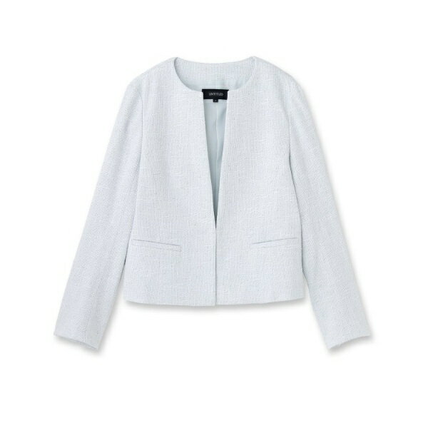 [型番:15348107]【デザイン】ツイード生地のノーカラージャケット。